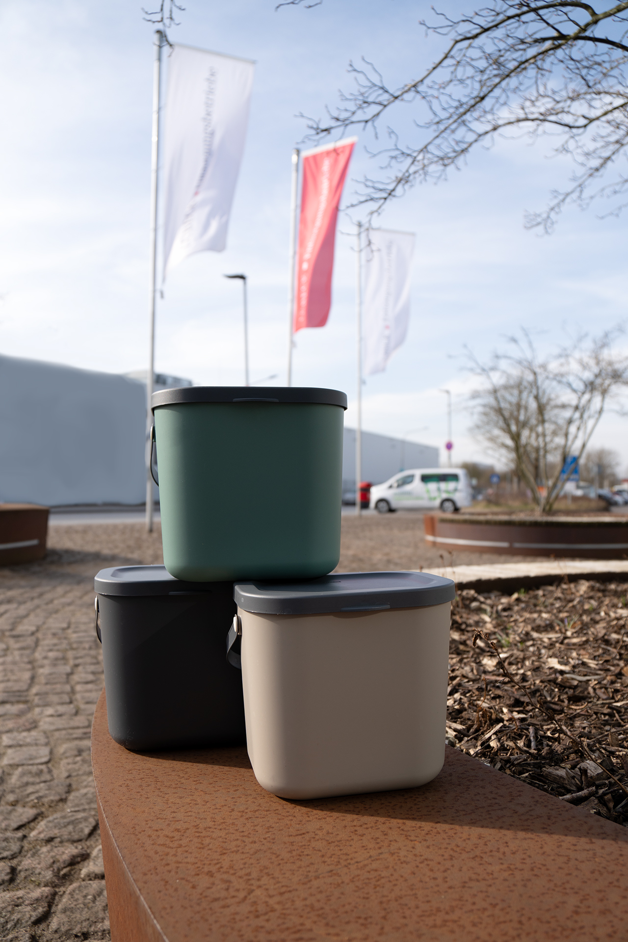 Die Haushalte in den Testgebieten erhalten zwei 6-Liter-Sortiergefäße für Küchenabfälle. Diese sollen ihnen helfen, Bioabfälle komfortabel getrennt dort zu sammeln, wo sie anfallen. Die Sortierbehälter wurden aus einer großen Vielfalt von Möglichkeiten ausgewählt und im Vorfeld getestet. Neben einem ansprechenden Design sind sie platzsparend und stapelbar. Der Deckel schließt gut, ist bei Bedarf abnehmbar und kann vollständig nach hinten geklappt werden. Der Henkel erlaubt einen praktischen Transport. Die Sortierbehälter können in der Spülmaschine gereinigt werden.